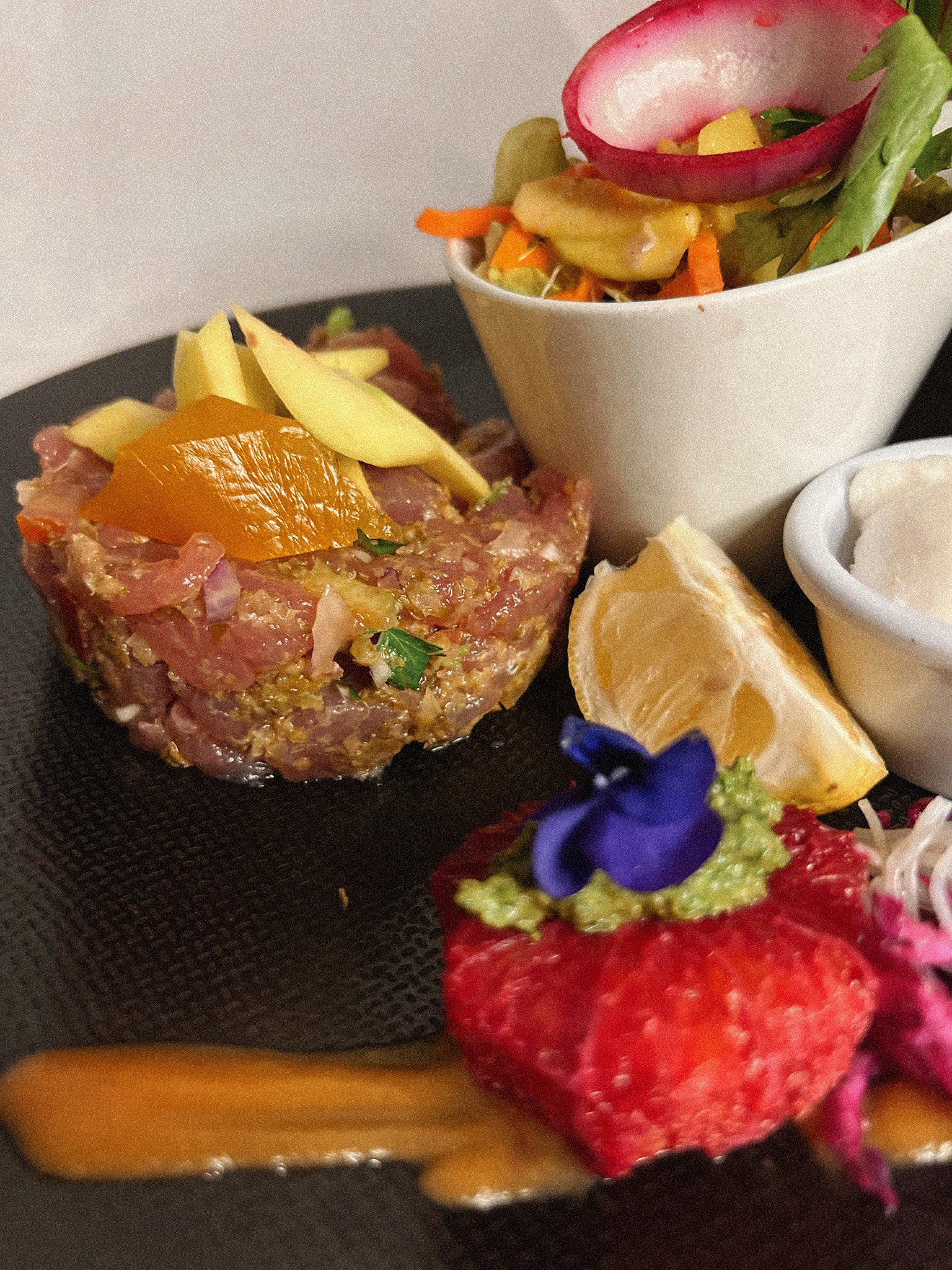 Un excellent repas. Nous nous sommes régalés avec une assiette d’entrées créoles, un délicieux tartare de thon rouge et un indécent burger au magret de canard et au foie gras.